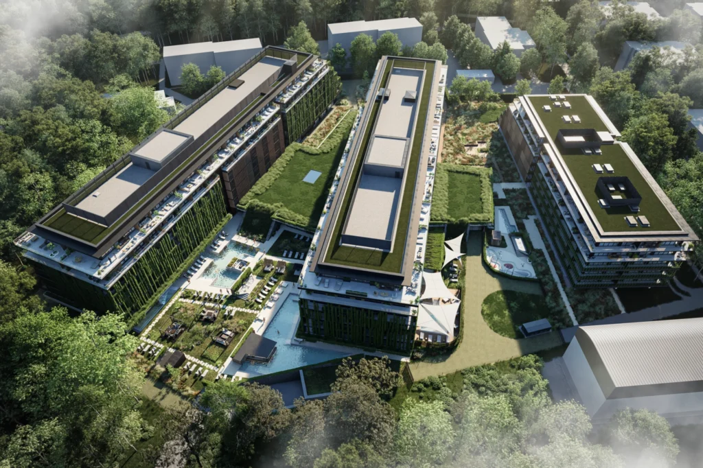 Trzy budynki o wachlarzowym układzie, zaprojektowane przez Medusa Group i IDS Architekci, otworzą się na Park Zdrojowy oraz Morze Bałtyckie. Architektura bazuje na drewnie, szkle i kamieniu, co ma podkreślać harmonię z otoczeniem. Natomiast połowę powierzchni inwestycji zajmą tereny zielone. Dachy porośnięte roślinnością i wertykalne ogrody, które wpisują się w koncepcję zrównoważonego wypoczynku.