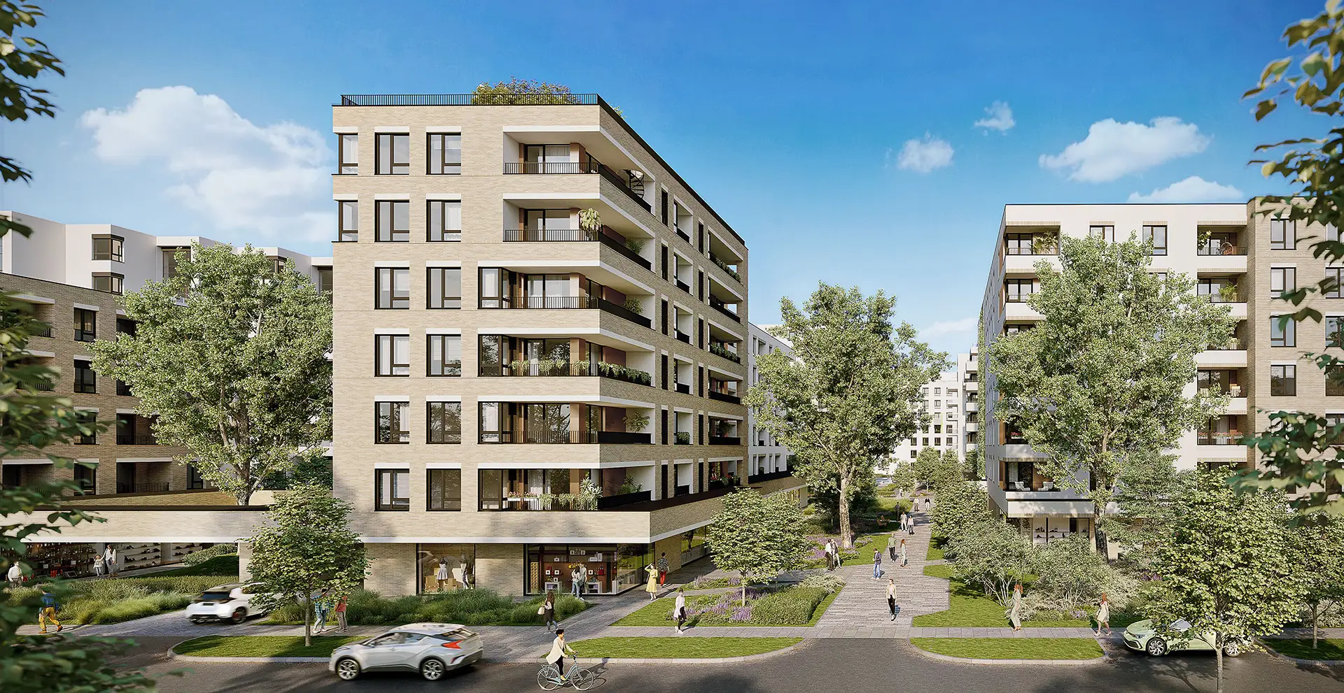 Zieleń ma wypełnić niemal połowę powierzchni inwestycji. Pomiędzy budynkami powstanie ogólnodostępny pasaż pieszy z lokalami usługowymi oraz przestrzeniami przeznaczonymi do wypoczynku i rekreacji.